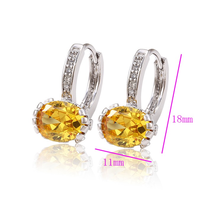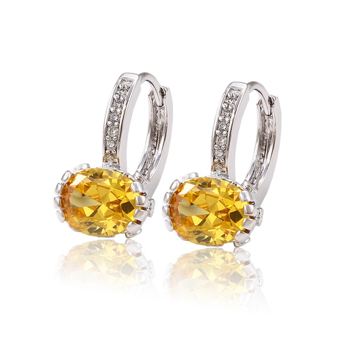 Eleganti un skaisti auskari ar ovālu, koši dzeltenu lielu cirkonu