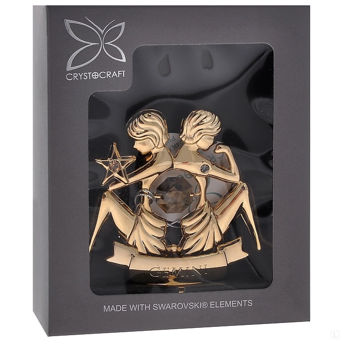 Svečturis ar zodiaka zīmi Dvīņi, ar SWAROVSKI kristāliem, zelta pārklājums. Izmērs 8,5*8,5*6 cm.