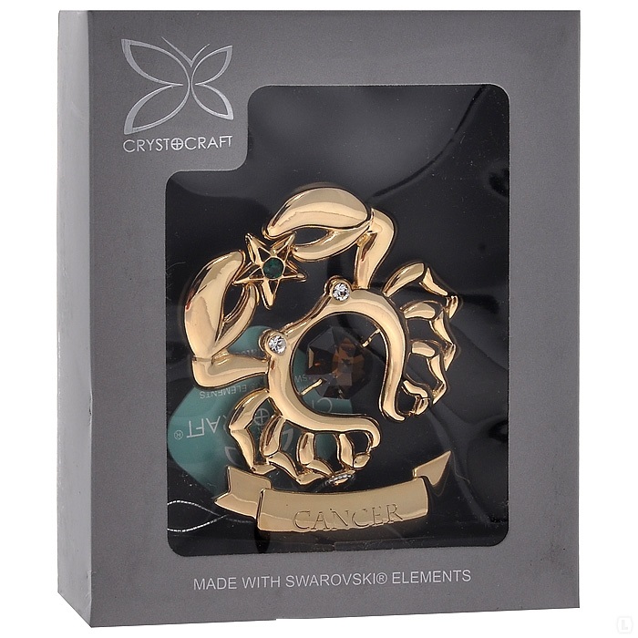 Svečturis ar zodiaka zīmi Vēzis, ar SWAROVSKI kristāliem, zelta pārklājums. Izmērs 8,5*8,5*6 cm.