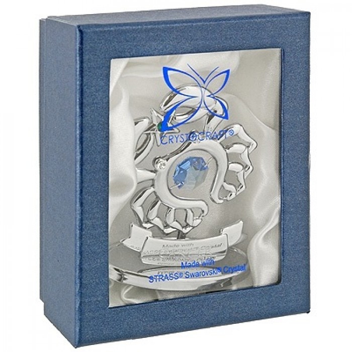 Zodiaka zīme VĒZIS ar SWAROVSKI kristāliem, hroma pārklājums. Dāvanu iepakojumā. Izmērs 7*6*3 cm.