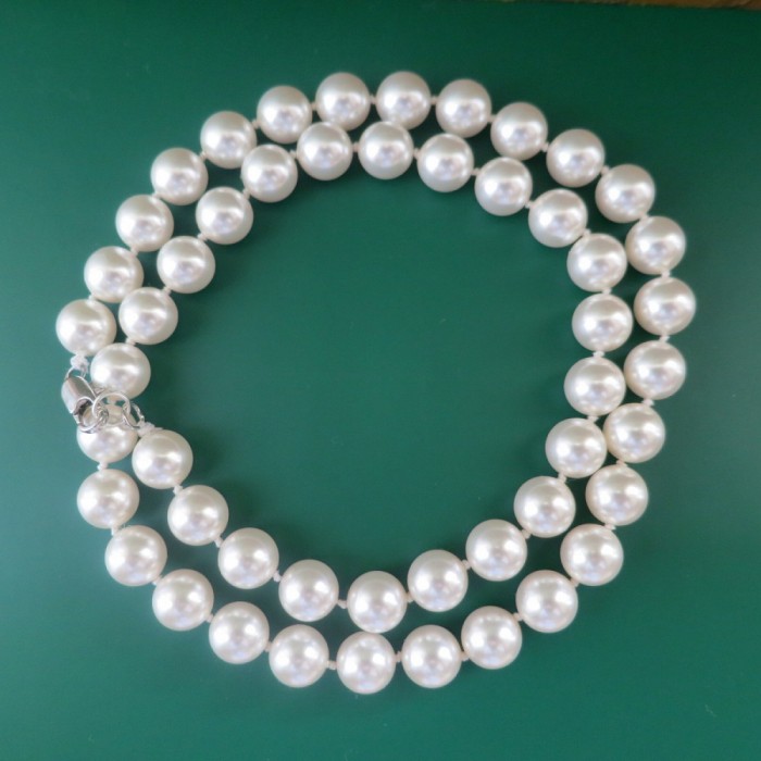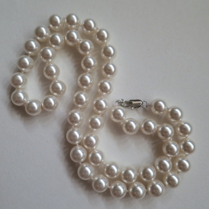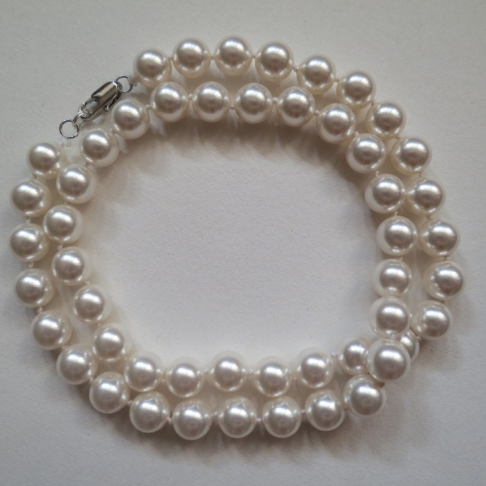 Swarovski kristāla pērļu krelles ar mezgliņiem ,,White Crystal" , aizdare ar sudraba pārklājumu, garums - 56 cm