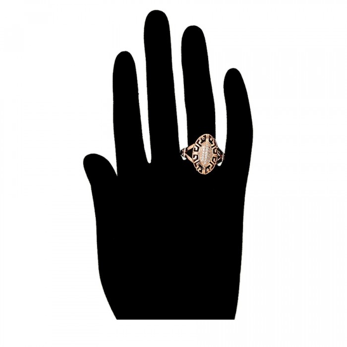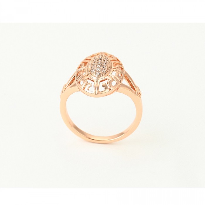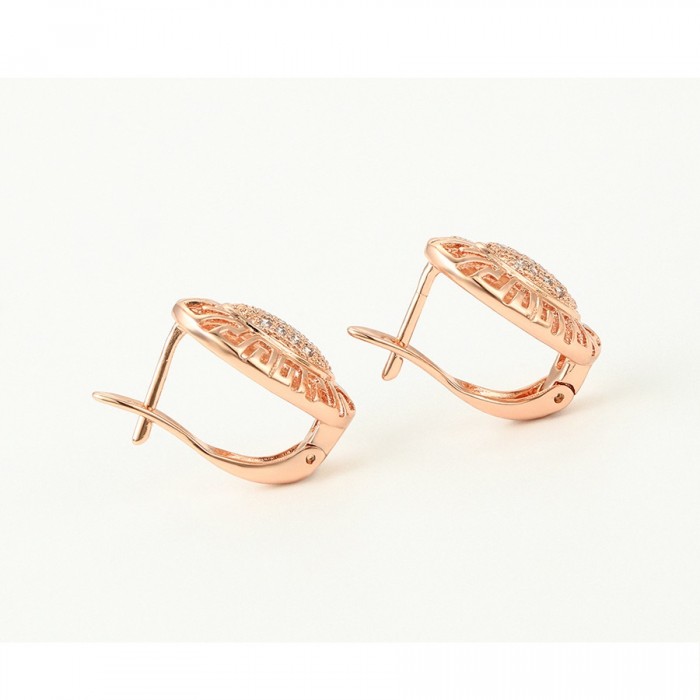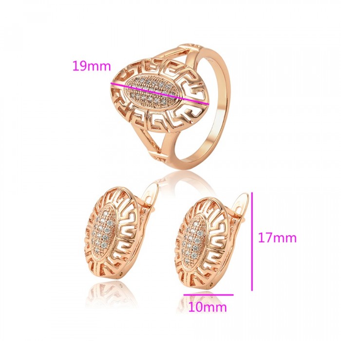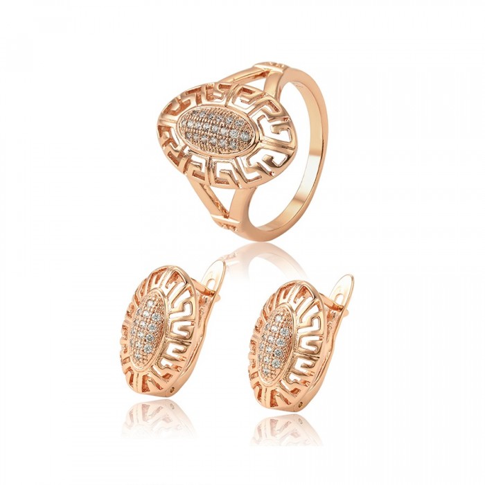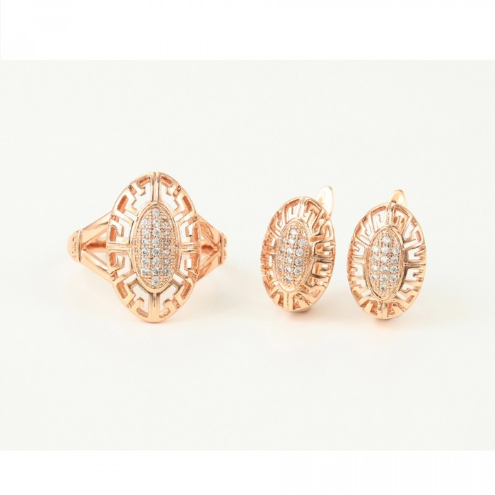 Elegants komplekts (auskari + gredzens) ar baltiem cirkoniem, rozā zelta pārklājums,
