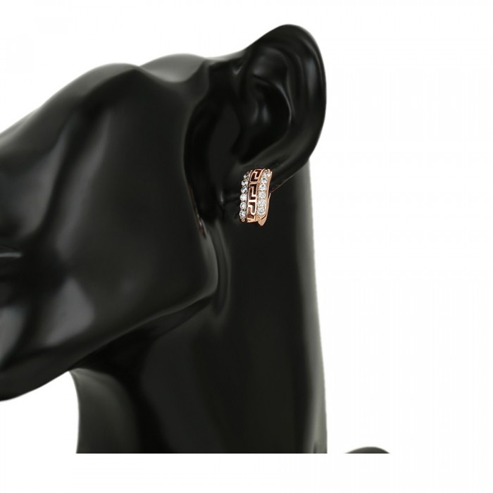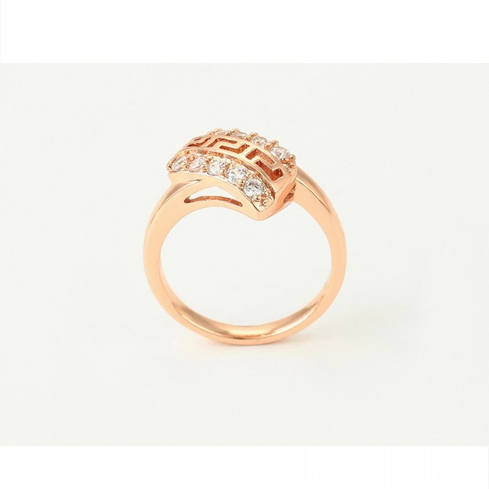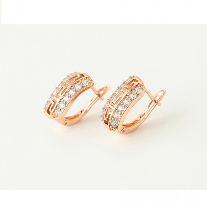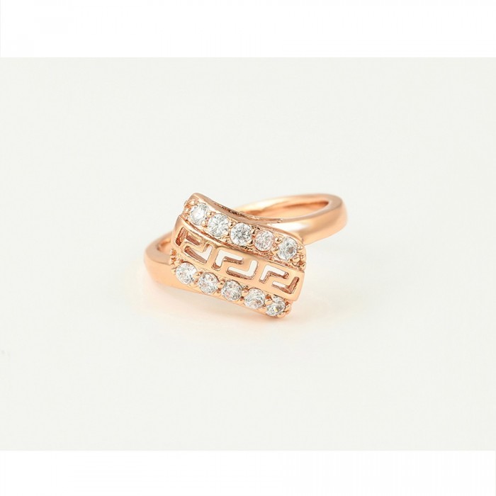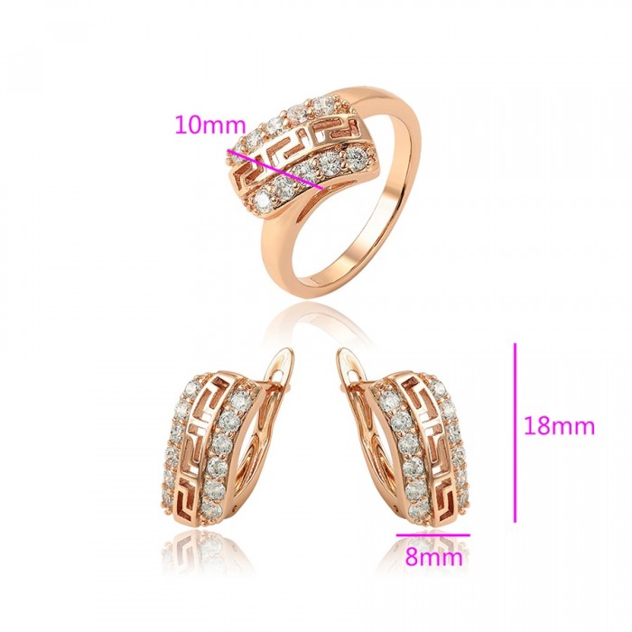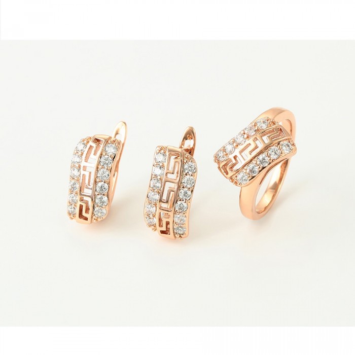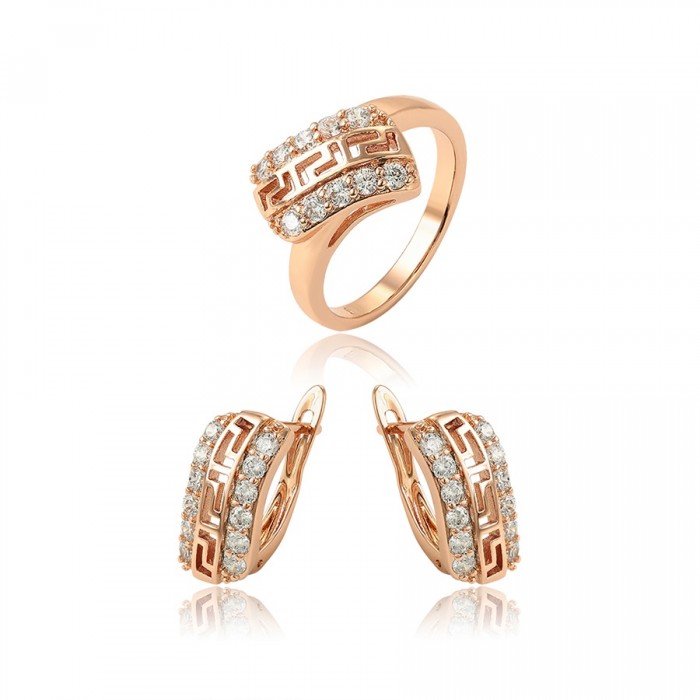 Elegants komplekts (auskari + gredzens) ar baltiem cirkoniem, rozā zelta pārklājums, dažādi gredzenu izmēri