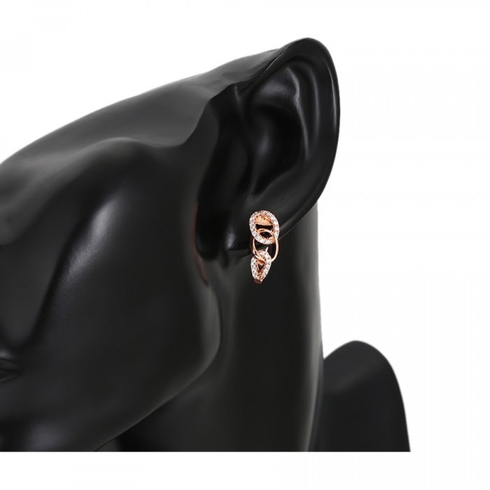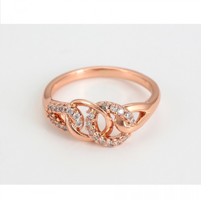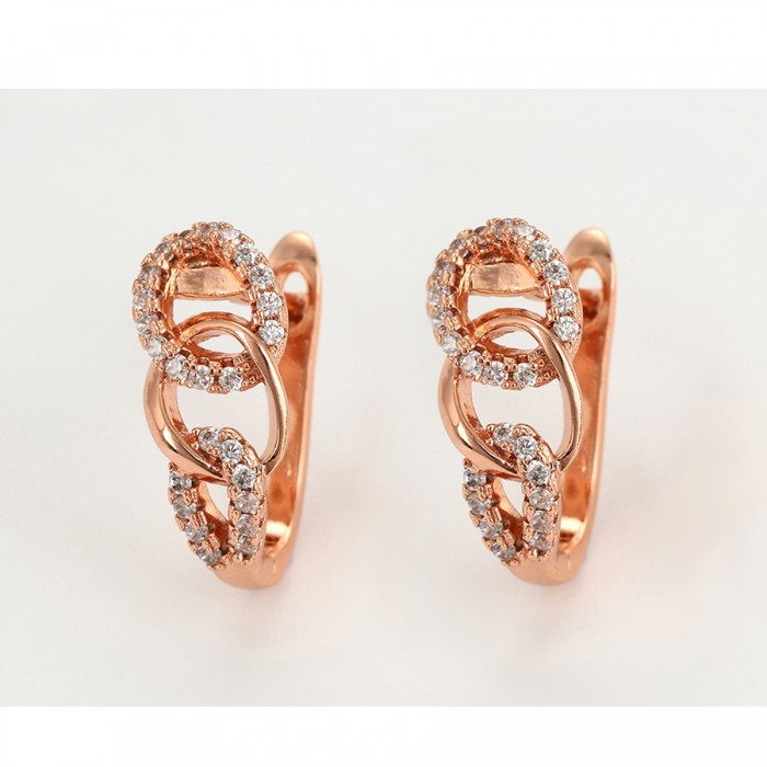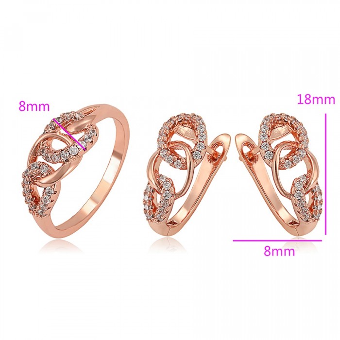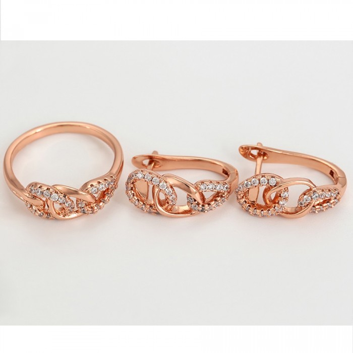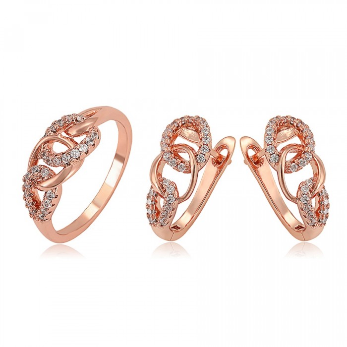 Elegants komplekts (auskari + gredzens) ar baltiem cirkoniem, rozā zelta pārklājums, dažādi gredzenu izmēri