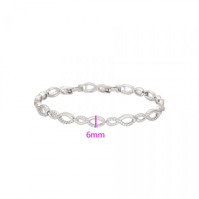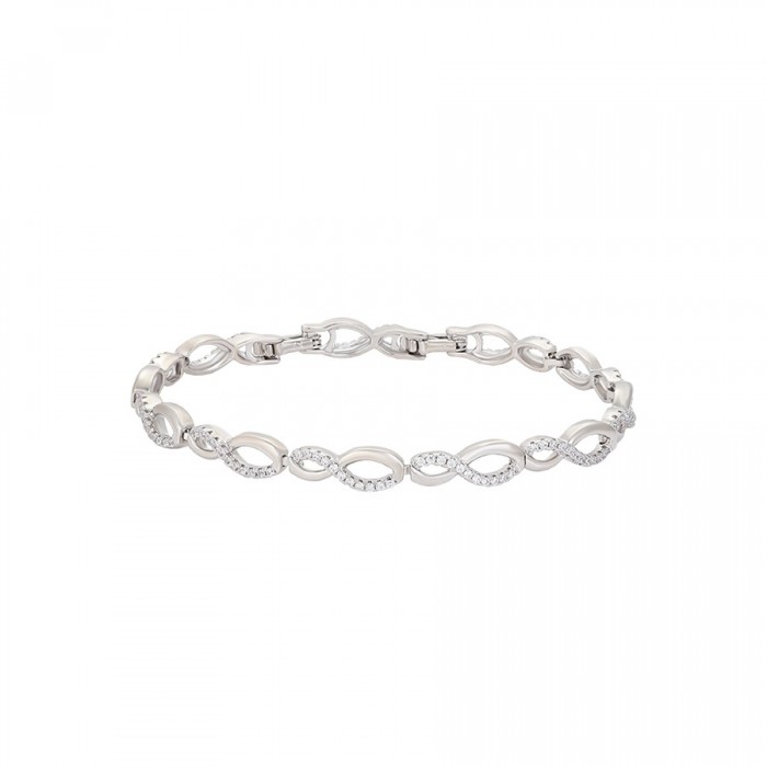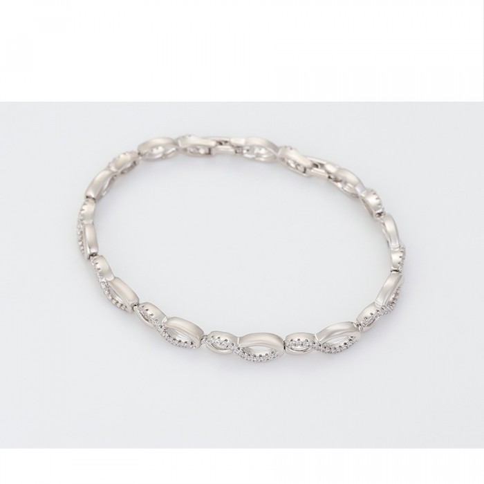 Eleganta rokassprādze ar baltiem cirkoniem, platīna pārklājums, garums 19-21 cm