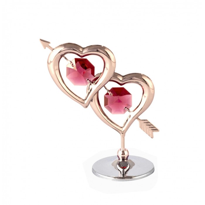 Divas sirdis ar bultu, ar SWAROVSKI kristāliem, uz pamatnes, hroma un roza zelta pārklājums.