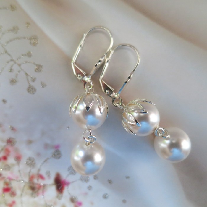 Auskari ar SWARVSKI pērlem, sudraba pārklājums