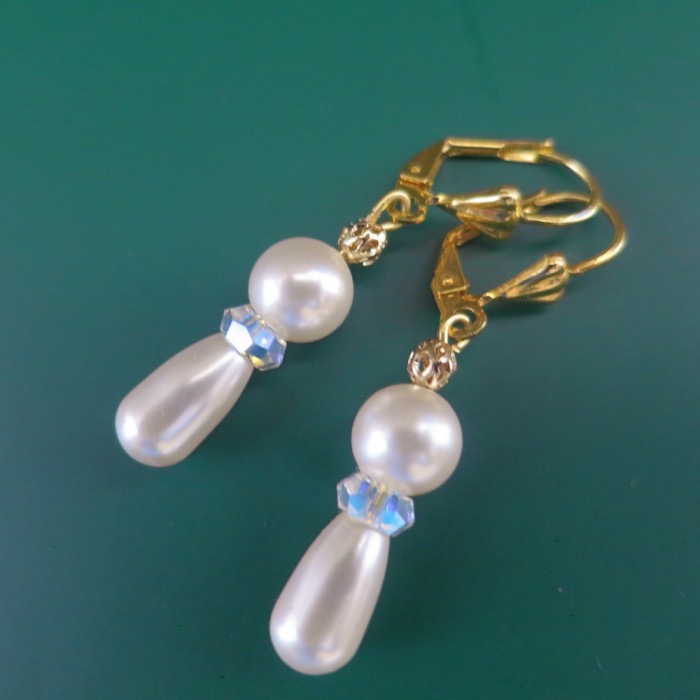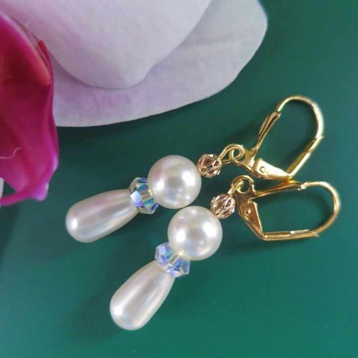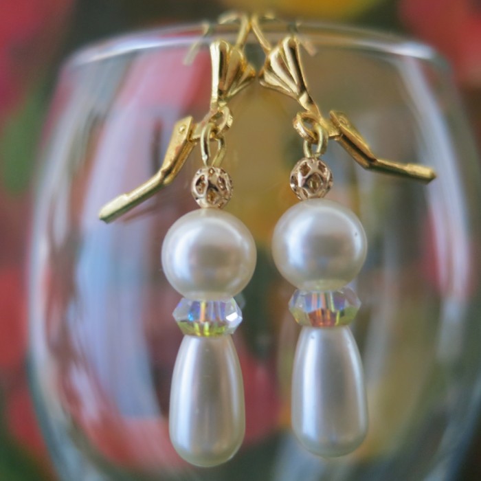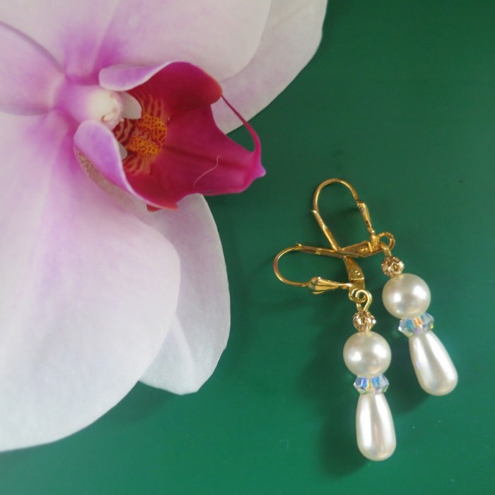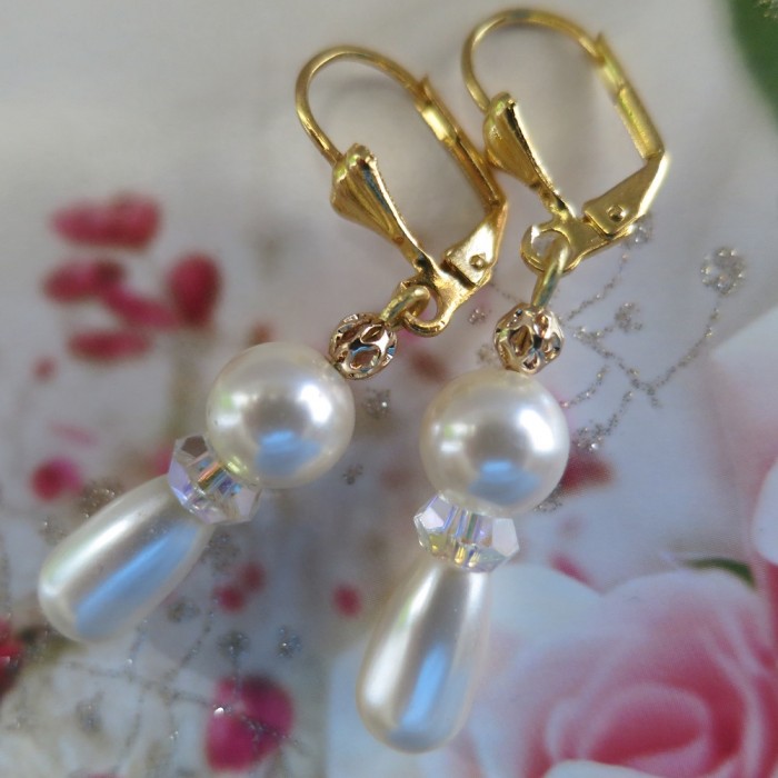 Auskari ar SWAROVSKI pērlem un SWAROVSKI kristāliem "Northern Lights", zelta pārklājums